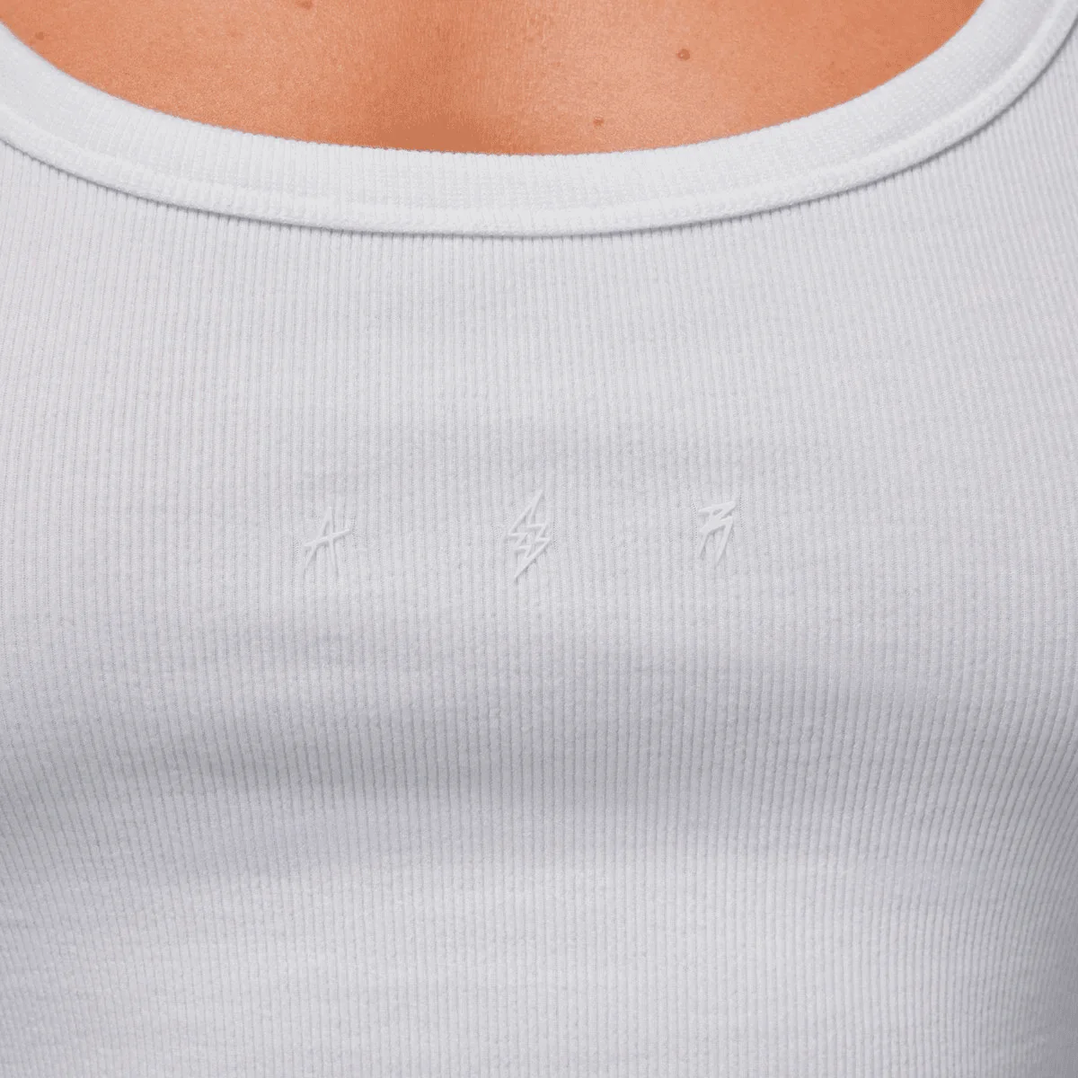 Está camiseta sin mangas está confeccionada con una mezcla de tres telas de punto suave y cuentan con gráficos en silicona para darle un estilo en relieve y texturizado.