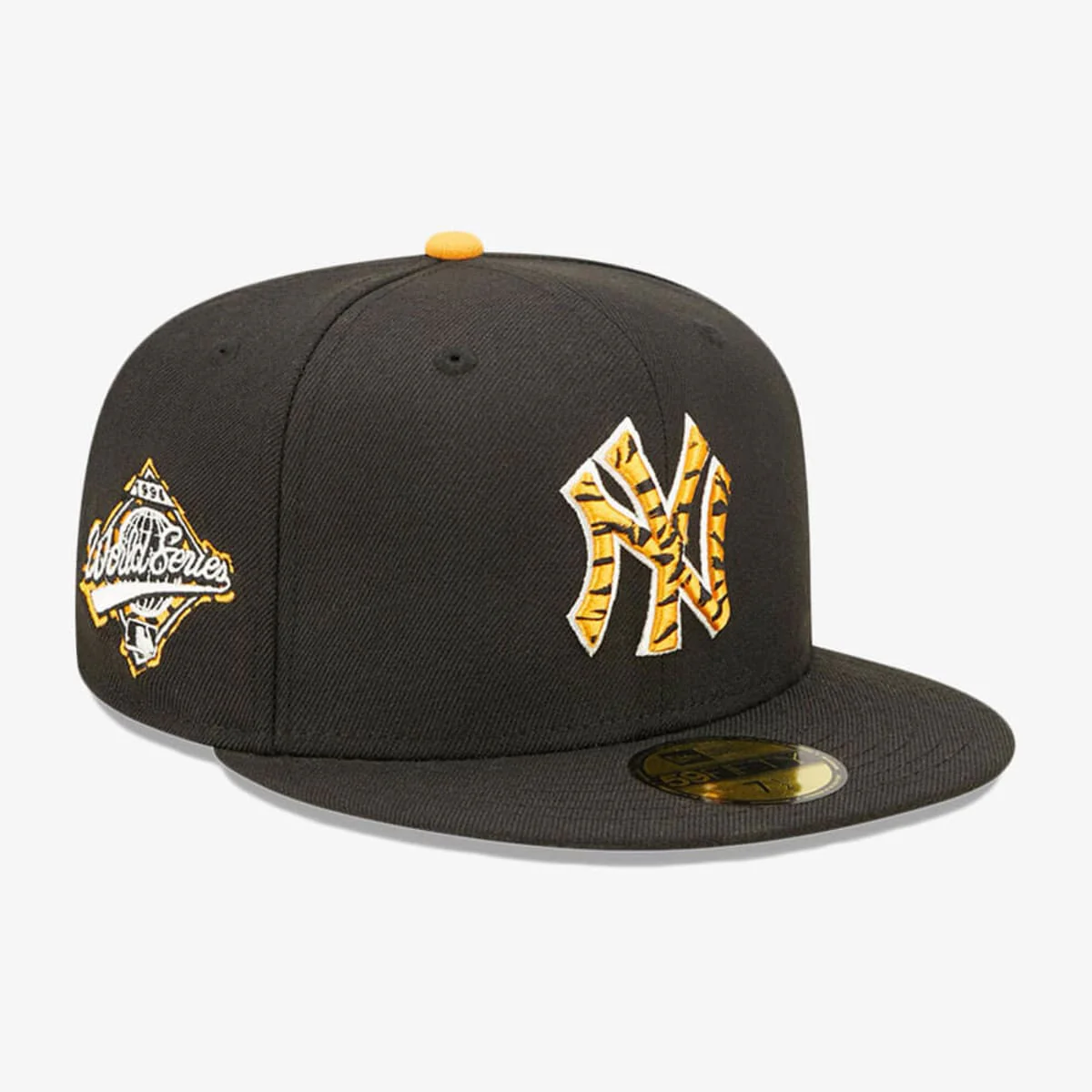 La gorra ajustada 59FIFTY Tiger Fill de los New York Yankees presenta una construcción de lana única, un logotipo del equipo bordado en los paneles frontales con un patrón de tigre y un parche de la Serie Mundial en el lado derecho. Los detalles adicionales incluyen la banda naranja y la parte inferior de la visera.